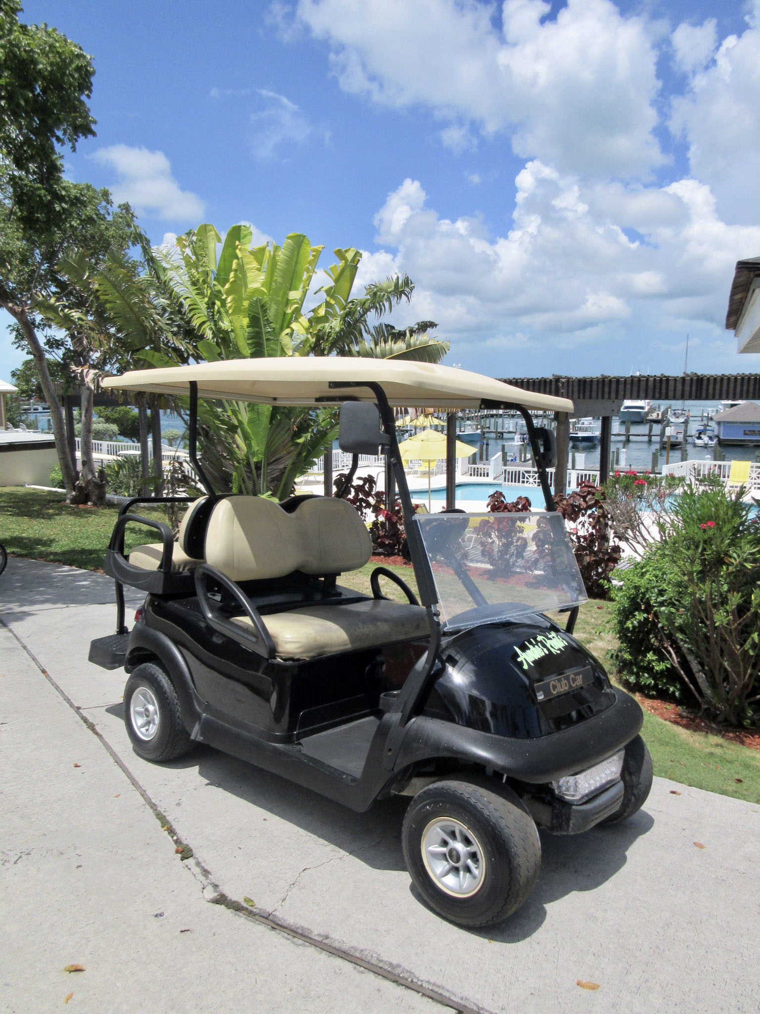 6 seater, modern, lifted golf cart includes drop-off at your location of choice on Harbour Island.