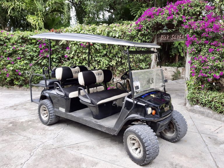 6 seater, modern, lifted golf cart includes drop-off at your location of choice on Harbour Island.